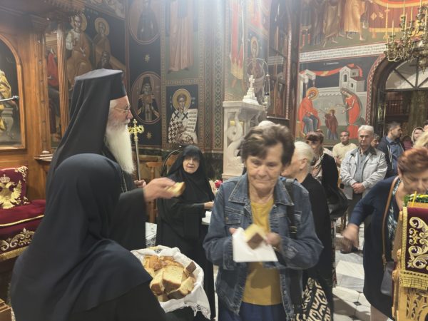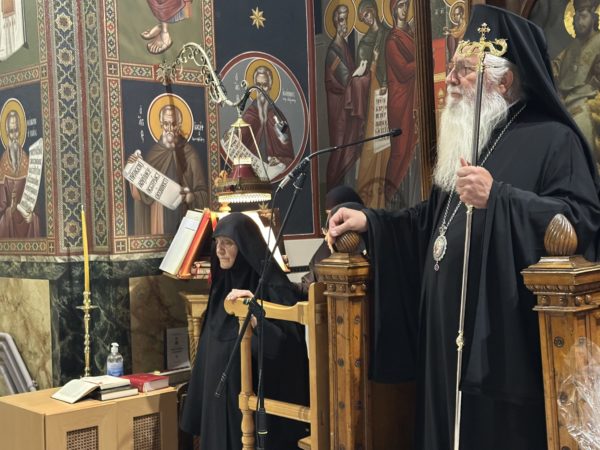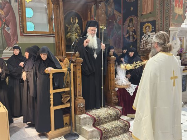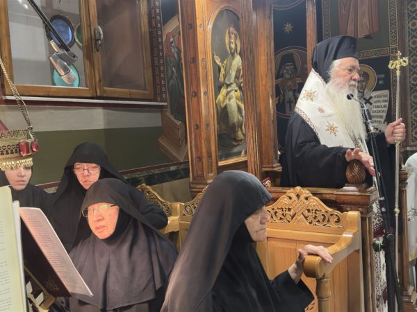 Ο Σεβασμιώτατος στο κήρυγμα μίλησε για τους Αγίους και τη μοναχική ζωή και ευχήθηκε στη Γερόντισσα της Μονής οσιολογιωτάτη μοναχή Σιλουανή για την ονομαστική της εορτή.