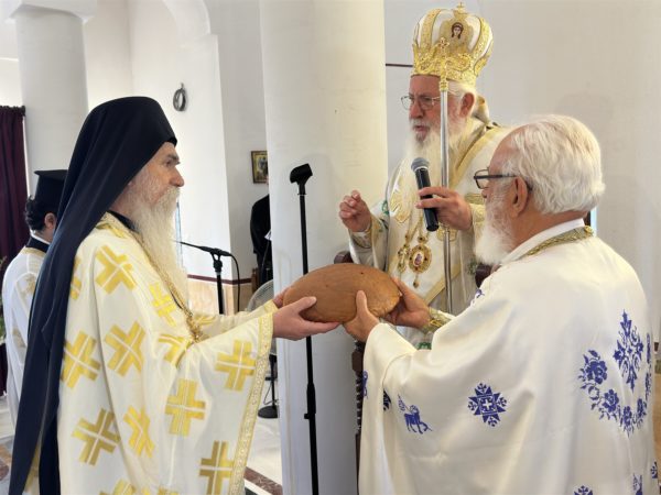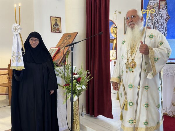 Ο Σεβασμιώτατος ευχήθηκε στη Γερόντισσα Βασιλεία μοναχή και τις μοναχές της Μονής και όλους τους πιστούς Χρόνια πολλά και ευλογημένα. Μετά τη Θεία Λειτουργία ο Σεβασμιώτατος τέλεσε τρισάγιο στον τάφο του μακαριστού π. Κωνσταντίνου Γκέλη, που βρίσκεται στην Ιερά Μονή, της οποίας ήταν κτίτωρ.