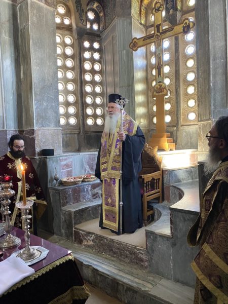 Ο Σεβασμιώτατος στο τέλος του Εσπερινού αναφέρθηκε στη σημασία της σταυρικής θυσίας και της Ανάστασης του Κυρίου μας για την σωτηρία των ανθρώπων, καθώς και στον τιμώμενο Όσιο Σεραφείμ, και ευχήθηκε σε όλους τους πιστούς Χρόνια πολλά, υγεία και δύναμη δια πρεσβειών του Οσίου Σεραφείμ.