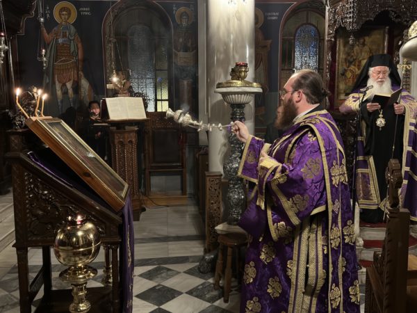 Ο Σεβασμιώτατος μιλώντας στο εκκλησίασμα ανέλυσε το αποστολικό ανάγνωσμα της ημέρας τονίζοντας το στίχο “ὁ Κύριος ἐγγύς, μηδὲν μεριμνᾶτε, ἀλλ’ ἐν παντὶ τῇ προσευχῇ καὶ τῇ δεήσει μετὰ εὐχαριστίας τὰ αἰτήματα ὑμῶν γνωριζέσθω πρὸς τὸν Θεόν καὶ ἡ εἰρήνη τοῦ Θεοῦ ἡ ὑπερέχουσα πάντα νοῦν φρουρήσει τὰς καρδίας ὑμῶν καὶ τὰ νοήματα ὑμῶν ἐν Χριστῷ ᾿Ιησοῦ” και αναφέρθηκε στους καρπούς του Πνεύματος της χριστιανικής ζωής. Τέλος, ευχήθηκε στους άρχοντες και στους πιστούς καλή Αγία Μεγάλη Εβδομάδα.