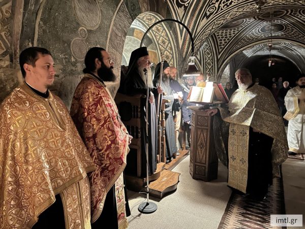 Το εσπέρας της ίδιας ημέρας, παραμονή της εορτής της Αγίας Βαρβάρας, ο Σεβασμιώτατος Ποιμενάρχης κ. Γεώργιος χοροστάτησε στον Εσπερινό στην Κρύπτη της Αγίας Βαρβάρας της Ιεράς Μονής Οσίου Λουκά, με τη συμμετοχή των κατοίκων της περιοχής.