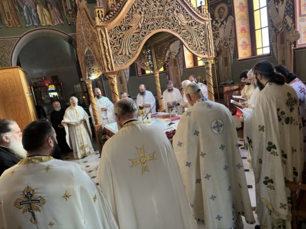 Τη Θεία Λειτουργία τέλεσε ο Σεβασμιώτατος Μητροπολίτης Θηβών κ. Γεώργιος πλαισιούμενος από ιερείς της Μητροπόλεως, συμπροσευχομένου του Σεβασμιωτάτου Μητροπολίτη Άρτης κ. Καλλινίκου.