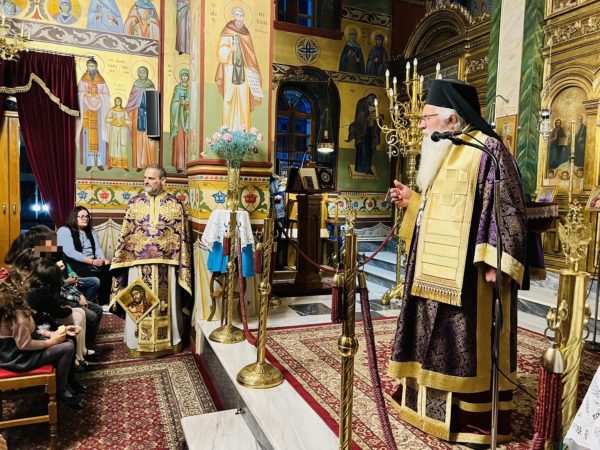 Το εσπέρας της Τετάρτης ο Σεβασμιώτατος τέλεσε τη Θ.Λειτουργία των Προηγιασμένων Τιμίων Δώρων στον Ιερό Ναό της Αγίας Τριάδος Βαγίων με τη συμμετοχή των κατοίκων και πολλών παιδιών.