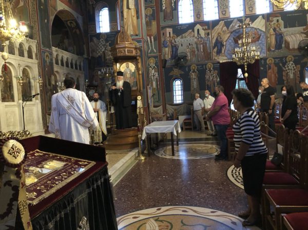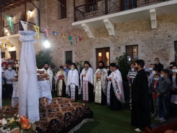 Το Θείο Λόγο κήρυξε ο πανοσ. αρχιμ. π. Γεώργιος Θανάσου. Στο τέλος, ο Σεβασμιώτατος ανέφερε, ότι τούτες τις ημέρες θα πρέπει να στρέψουμε το βλέμμα μας, τη βοήθειά μας και την προσευχή μας στους πληγέντες από τις πυρκαγιές συνανθρώπους μας και ευχήθηκε στην Καθηγουμένη της Μονής Ξένη μοναχή και στους προσκυνητές Χρόνια πολλά και η Παναγία να τους στηρίζει και να τους ενισχύει.