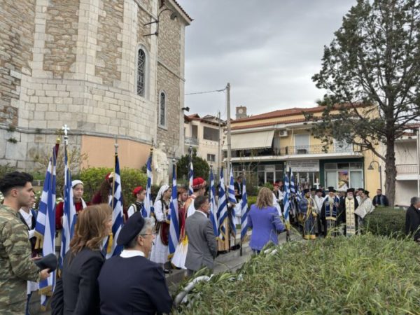 Κατόπιν, ο Σεβασμιώτατος τέλεσε επιμνημόσυνη δέηση υπέρ αναπαύσεως των ψυχών όλων των αγωνιστών που θυσιάστηκαν για την ελευθερία της πατρίδας, στο μνημείο των Ηρώων, που βρίσκεται έμπροσθεν του Μητροπολιτικού Ναού. Στη συνέχεια ο Σεβασμιώτατος παρακολούθησε την παρέλαση των μαθητών, συλλόγων και τμημάτων των ενόπλων δυνάμεων και των σωμάτων ασφαλείας.