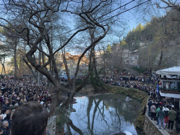 Μετά το πέρας της Ακολουθίας του Μεγάλου Αγιασμού ο Επίσκοπος, οι κληρικοί και ο λαός της πόλης μετέβησαν στις πηγές της Κρύας, όπου πραγματοποιήθηκε η τελετή κατάδυσης του Τιμίου Σταυρού και αγιάστηκαν τα νερά της Έρκυνας. Ο Σεβασμιώτατος στο λόγο του τόνισε ότι με τον αγιασμό των υδάτων αγιάζεται όλη η φύση, η οποία είναι δημιουργία του Θεού και ο άνθρωπος ως διαχειριστής της θα πρέπει να την προστατεύει, και ευχήθηκε σε όλους τους πιστούς υγεία και κάθε ευλογία το νέο έτος, ενότητα, συνεργασία και αγάπη για το κοινό καλό.