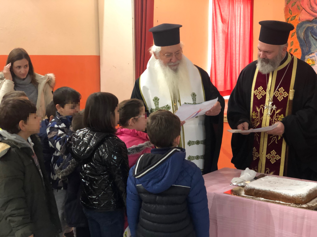 Ο Σεβασμιώτατος μίλησε με απλά λόγια καρδιάς στα παιδιά προτρέποντάς τα να διαβάζουν, αναφέροντάς τους μάλιστα το παράδειγμα με τη μέλισσα και την τριανταφυλλιά του Μεγάλου Βασιλείου, και τους ευχήθηκε υγεία και καλή πρόοδο.