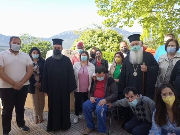 Κατόπιν, ο Σεβασμιώτατος επισκέφθηκε όλους τους φιλοξενούμενους στο Θεραπευτήριο, καθώς και τα παιδιά του Κέντρου “Ειδική Παιδεία”, τα οποία υποδέχτηκαν τον Σεβασμιώτατο τραγουδώντας.