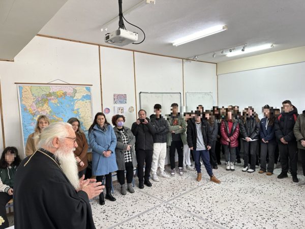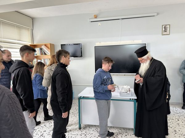 Ο Μητροπολίτης Θηβών, Λεβαδείας και Αυλίδος κ. Γεώργιος επισκεπτόμενος τα σχολεία του Κυριακίου, μίλησε στους μαθητές για το Μ.Βασίλειο συμβουλεύοντάς τους να παίρνουν από καθετί το ωφέλιμο και να κινούνται στη ζωή τους με γνώμονα την αγάπη στο συνάνθρωπο και στο Θεό.