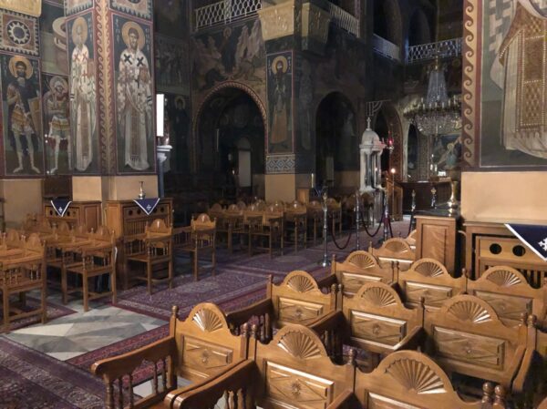Η Ακολουθία του Ακαθίστου Ύμνου τελέστηκε την Παρασκευή 3 Απριλίου 2020 στον Ιερό Μητροπολιτικό Ναό Εισοδίων της Θεοτόκου στη Λειβαδιά, κεκλεισμένων των θυρών από τον Σεβασμιώτατο Μητροπολίτη Θηβών και Λεβαδείας κ. Γεώργιο με τη συνοδεία των δύο ιερέων του ναού και τους δύο ψάλτες.