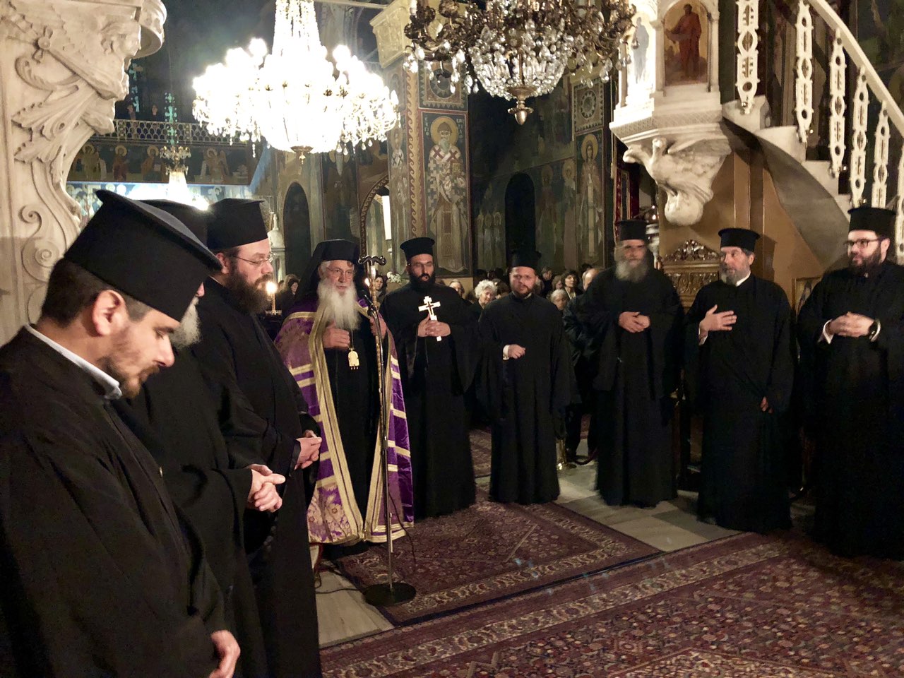 Στο τέλος του Εσπερινού ακολούθησε ο ασπασμός της συγγνώμης μεταξύ του επισκόπου, των ιερέων και των πιστών.
