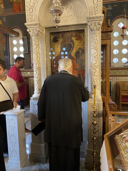 Στη συνέχεια ο Σεβασμιώτατος και οι συνεργάτες του επισκέφθηκαν και προσκύνησαν στο Ιερό Προσκύνημα της Παναγίας Φανερωμένης Νέας Αρτάκης, όπου έγιναν δεκτοί από τον Σεβασμιώτατο Μητροπολίτη Χαλκίδος, Ιστιαίας και Βορείων Σποράδων κ. Χρυσόστομο και τον Θεοφιλέστατο Επίσκοπο Σκοπέλου κ. Νικόδημο, καθώς και τους ιερείς του Ναού.