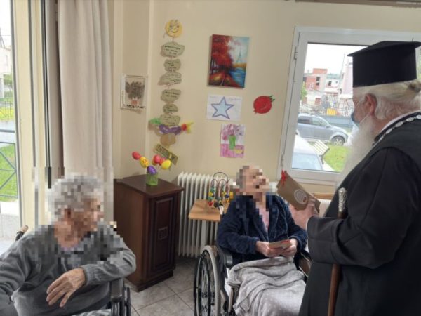 Πριν την ακολουθία του Νυμφίου ο Σεβασμιώτατος επισκέφθηκε την Ενοριακή Στέγη Γερόντων «Ο Άγιος Αθανάσιος ο Μέγας» του Ενοριακού Ιερού Ναού Αγίου Αθανασίου Πυρίου Θηβών, πρόσφερε δώρα και ευχήθηκε στους φιλοξενούμενους του Ιδρύματος.
