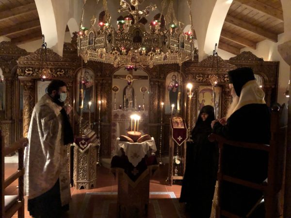 Την παραμονή της εορτής ο Σεβασμιώτατος χοροστάτησε στον Εσπερινό της Αγρυπνίας, που τελέστηκε στο Παρεκκλήσιο της Υπαπαντής του Κυρίου στην Ιερά Μονή Ιωάννου του Θεολόγου στο Μαζαράκι Βαγίων, με τη συμμετοχή μόνο της αδελφότητας.