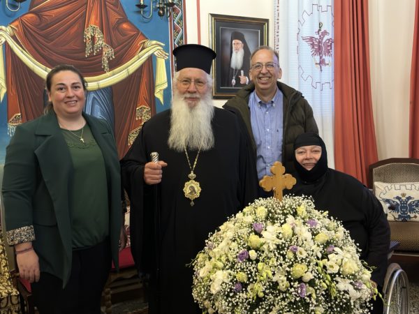 Τέλος, εξέφρασε εγκάρδιες αναστάσιμες ευχές στην Καθηγουμένη της Μονής Γερόντισσα Ξένη και στην αδελφή της Μονής μοναχή Ιερουσαλήμ, καθώς και στους πιστούς που συμμετείχαν στη Θεία Λειτουργία.