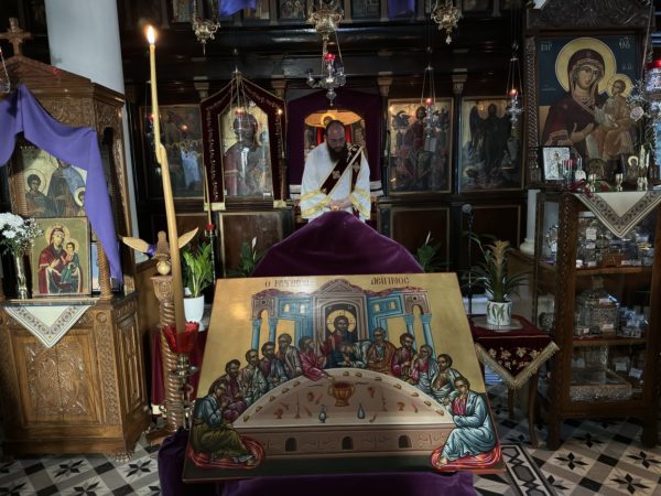 Αναφέρθηκε στη Θεία Κοινωνία, που είναι κοινωνία του ανθρώπου με τον Θεό, του ανθρώπου με τους συνανθρώπους του και του ανθρώπου με τον εαυτό του. Επίσης, αναφέρθηκε στον ιερό Νιπτήρα και την ταπείνωση και τη διακονία των συνανθρώπων μας, που μας διδάσκει ο Χριστός και πρέπει να διακατέχει τη ζωή μας.