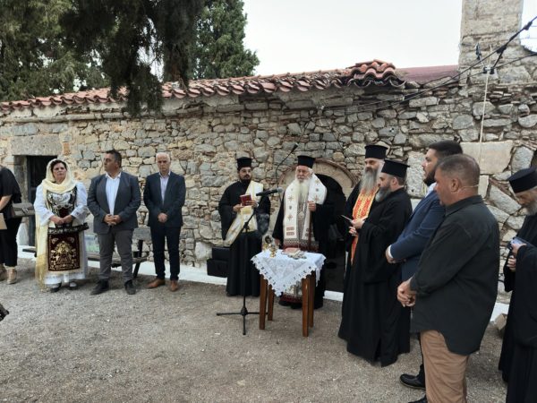 Ο Σεβασμιώτατος κήρυξε το θείο λόγο και ευχήθηκε στον Καθηγούμενο της Μονής πανοσ. αρχιμ. π. Συμεών Αναστασίου και την αδελφότητα της Μονής, καθώς και στους προσκυνητές χρόνια πολλά και ευλογημένα.