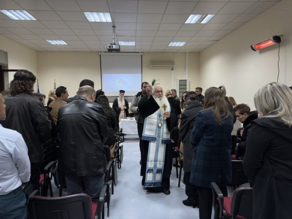 Ο Σεβασμιώτατος τέλεσε την ακολουθία του Αγιασμού και στη συνέχεια ευλόγησε τη Βασιλόπιτα του Σχολείου, παρουσία του Διευθυντή, των Εκπαιδευτών, των Εκπαιδευόμενων και της Δημοτικής Αρχής.