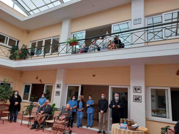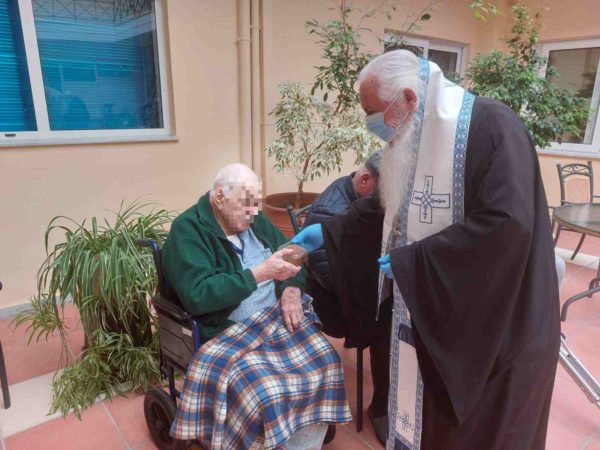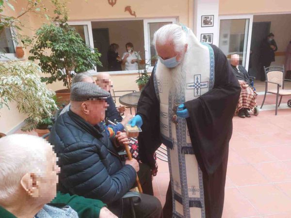 Στη συνέχεια, ο Σεβασμιώτατος μοίρασε ο ίδιος τη βασιλόπιτα στους τροφίμους του Θεραπευτηρίου και συνομίλησε μαζί τους.