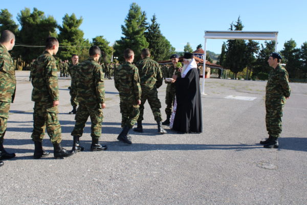 Ο Σεβασμιώτατος τέλεσε την Ακολουθία του Αγιασμού και ευχήθηκε στους στρατιώτες, τον  Διοικητή και τους Αξιωματικούς του Κέντρου υγεία και  δύναμη στο δύσκολο έργο τους.