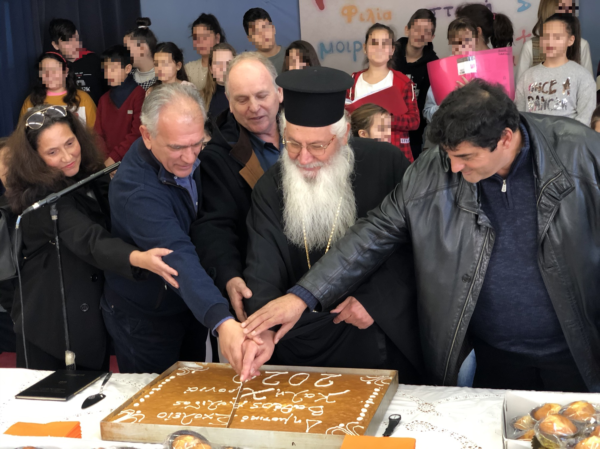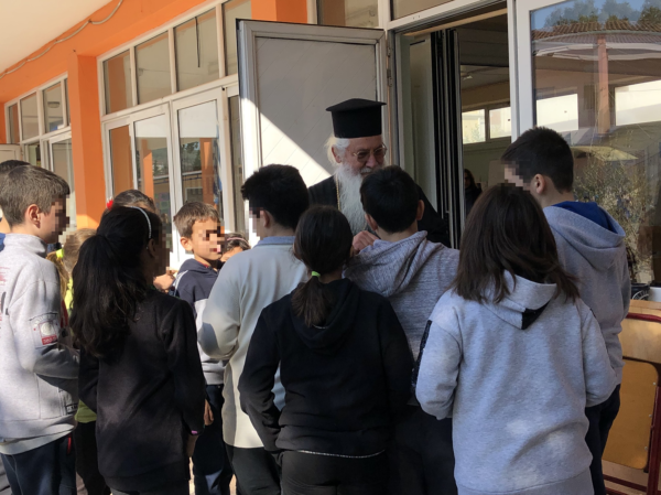 Στη συνέχεια ο Σεβασμιώτατος επισκέφθηκε, κατόπιν προσκλήσεως του Διευθυντή, το Δημοτικό Σχολείο Βαθέος Αυλίδος, όπου ευλόγησε τη βασιλόπιτα του Σχολείου παρουσία όλων των μαθητών, των Δασκάλων, μελών του Συλλόγου Γονέων και Κηδεμόνων. Ο Σεβασμιώτατος μίλησε με τα παιδιά, τους μοίρασε εικονάκια των Τριών Ιεραρχών και ευχήθηκε σε όλους Καλή και ευλογημένη Χρονιά. Οι μαθητές έψαλαν το Απολυτίκιο των Τριών Ιεραρχών και τραγούδησαν τραγούδια.