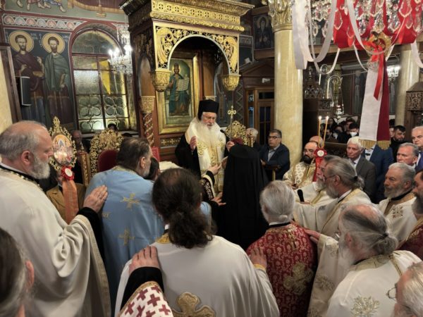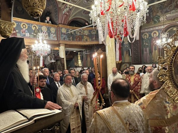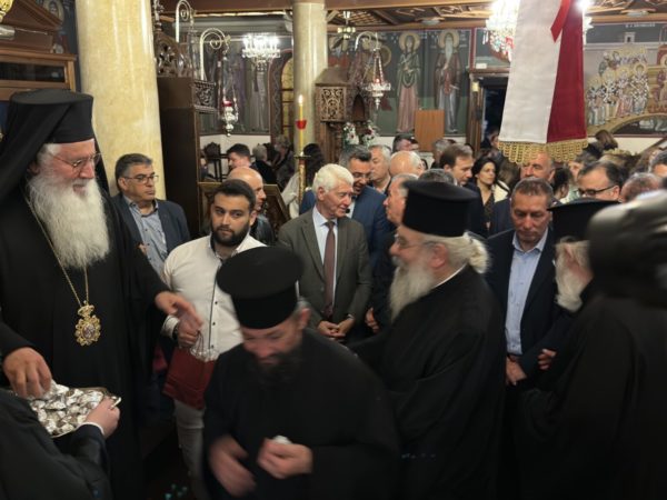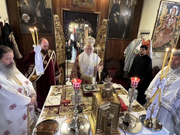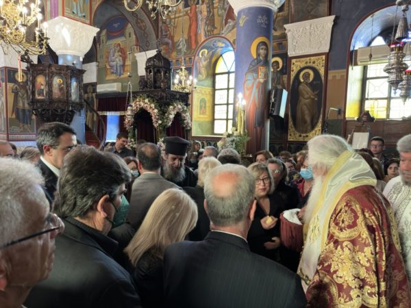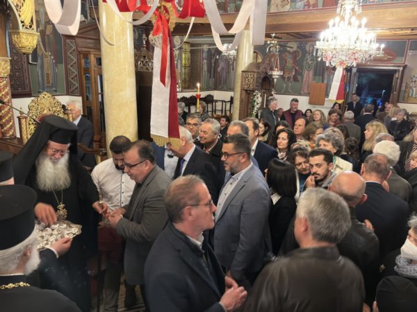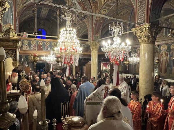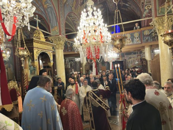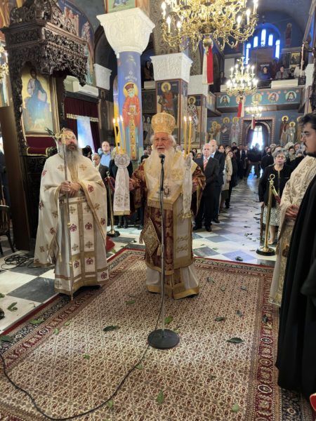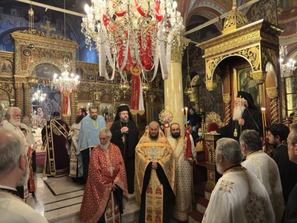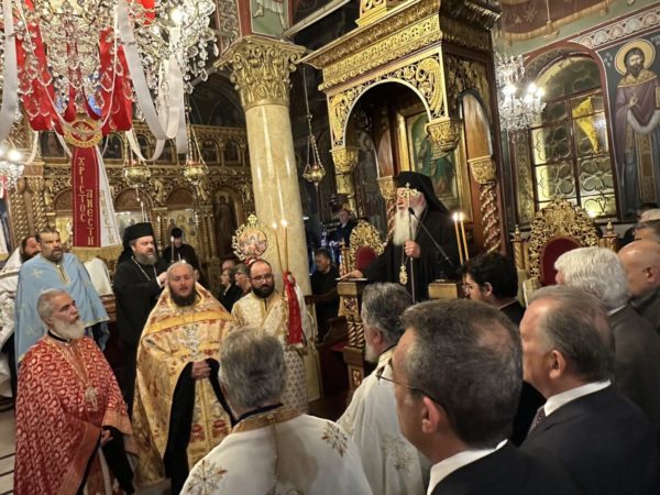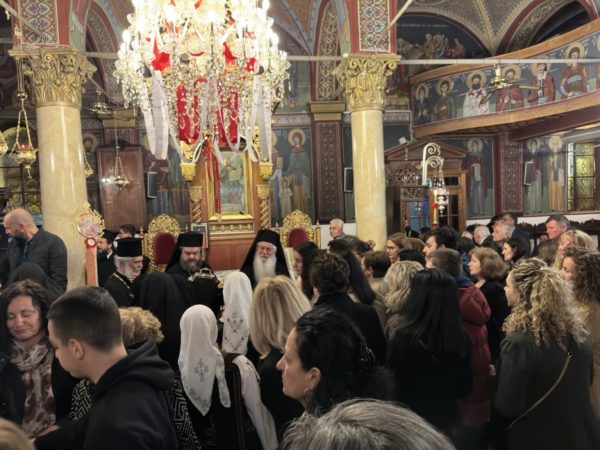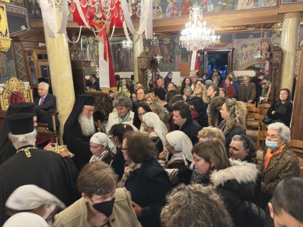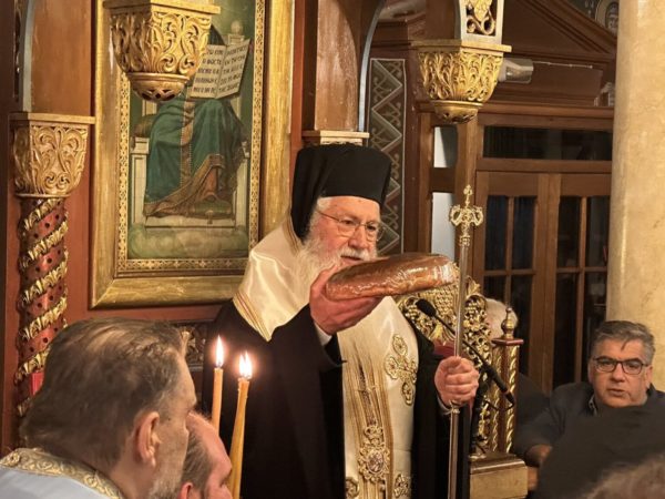 Τέλος, ευχήθηκε σε όλους Χρόνια Πολλά, ευλογημένα και ελπιδοφόρα. Κατά τη διανομή του αντιδώρου ο Σεβασμιώτατος δέχτηκε τις ευχές του πολυπληθούς εκκλησιάσματος που είχε κατακλύσει τον πανηγυρίζοντα Ιερό Ναό.