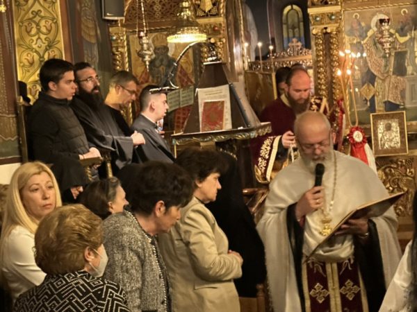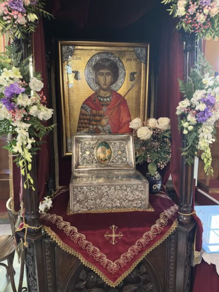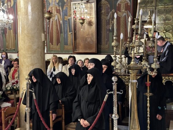 Την παραμονή της εορτής 22 Απριλίου 2023 ο Σεβασμιώτατος Μητροπολίτης κ. Γεώργιος χοροστάτησε στον πανηγυρικό Εσπερινό στον Ιερό Ναό του Αγίου Γεωργίου Θηβών, στον οποίο συμμετείχαν ιερείς της επαρχίας Θηβών, Γερόντισσες και μοναχές Ιερών Μονών, οι αρχές του τόπου και πλήθος πιστών.