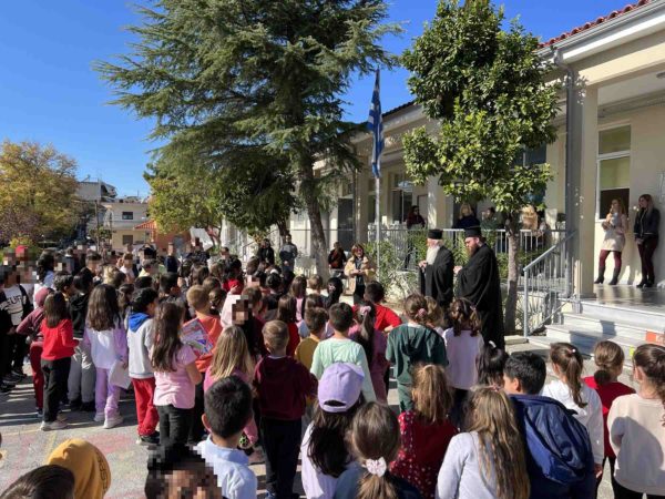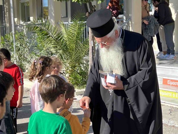 Επίσης, ευχαρίστησε τους εκπαιδευτικούς για την προσφορά τους και τους ευχήθηκε καλή δύναμη στο έργο τους. Ο Σεβασμιώτατος σε όλους τους μαθητές πρόσφερε από μια εικονίτσα και ένα στυλό.