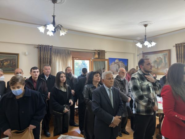 Κατόπιν, στην Αίθουσα Εκδηλώσεων του Γραφείου της Μητροπόλεως στη Θήβα, ο Σεβασμιώτατος ευλόγησε τη Βασιλόπιτα, παρουσία κληρικών, των τοπικών και στρατιωτικών αρχών, εκπροσώπων φορέων, συνεργατών και πιστών.