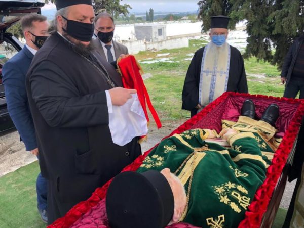 Της εξοδίου ακολουθίας προεξήρχε βάση των διατεταγμένων υγειονομικών διατάξεων ο Σεβασμιώτατος Μητροπολίτης Θηβών και Λεβαδείας κ. Γεώργιος ο οποίος ομίλησε για τον π. Κωνσταντίνο με πατρικούς και παρήγορους πνευματικούς λόγους προς τους οικείους συγγενείς του.