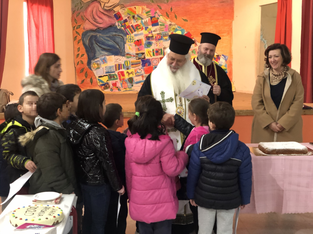 Τα παιδιά θέλοντας να εκφράσουν την αγάπη τους στον Σεβασμιώτατο του έδωσαν ως δώρο ζωγραφιές που τα ίδια είχαν φτιάξει. Η Διευθύντρια ευχαρίστησε τον Σεβασμιώτατο για την επίσκεψη στο Σχολείο τους, ενώ ο Σεβασμιώτατος ευχήθηκε στην Διευθύντρια και τους Δασκάλους καλή δύναμη στο έργο της διαπαιδαγώγησης των παιδιών.