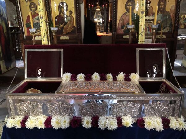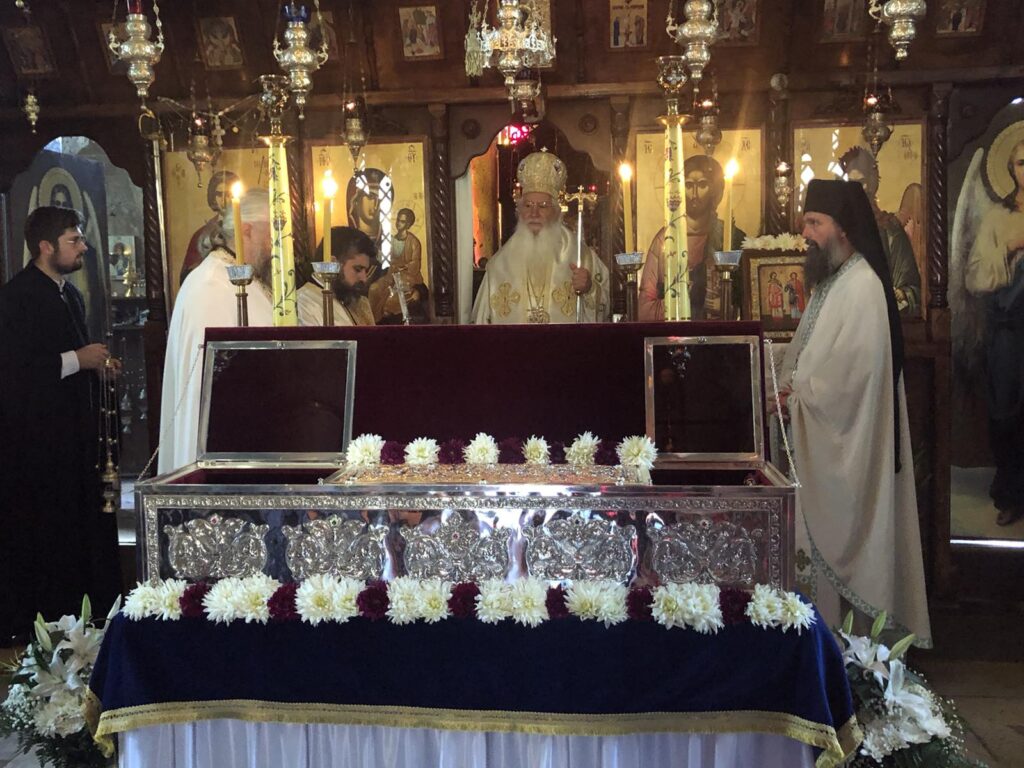 Ο πανοσ. Καθηγούμενος της Ιεράς Μονής π. Νεκτάριος Μήτσου προσέφερε στον Σεβασμιώτατο τμήμα του Ιερού Λειψάνου του Αγίου Φλώρου, λέγοντας πως είναι ένα ποιμαντικό δώρο προς τον Σεβασμιώτατο, ο οποίος έχει κάνει πολλά εγκαίνια Ιερών Ναών και μπορεί να το χρησιμοποιήσει σε εγκαίνια που πρόκειται να κάνει.