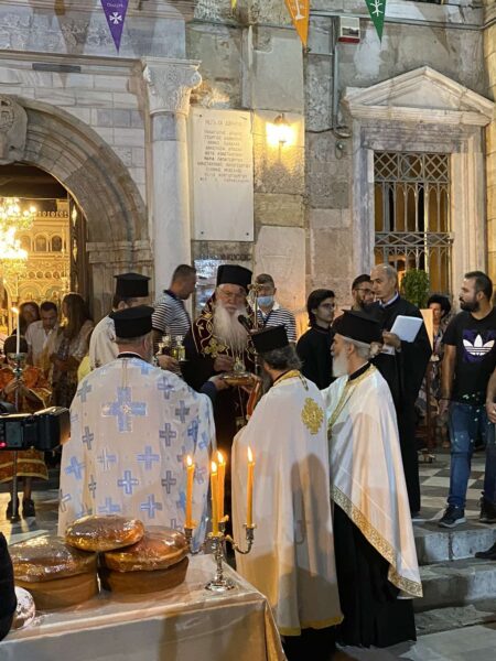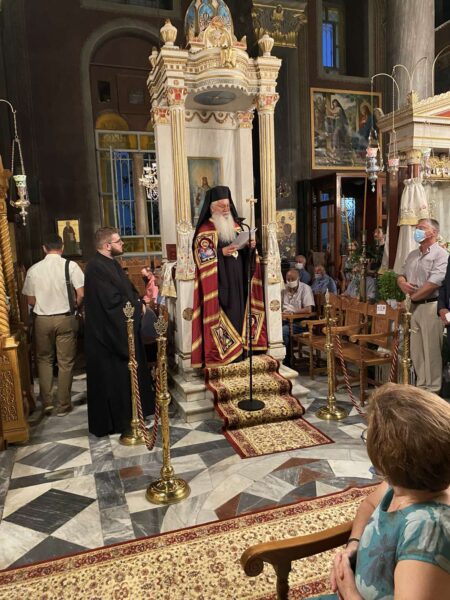 Ο Σεβασμιώτατος Μητροπολίτης Θηβών και Λεβαδείας κ. Γεώργιος την παραμονή της εορτής χοροστάτησε στον πανηγυρικό Εσπερινό στον Ιερό Ναό “Μεγάλης Παναγίας” – Αγίου Δημητρίου της πόλεως των Θηβών, που με λαμπρότητα εορτάζει την Κοίμηση της Παναγίας, με την συμμετοχή πλήθους πιστών.