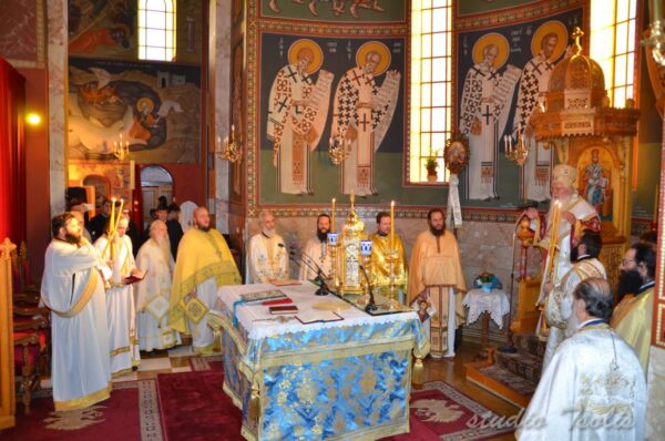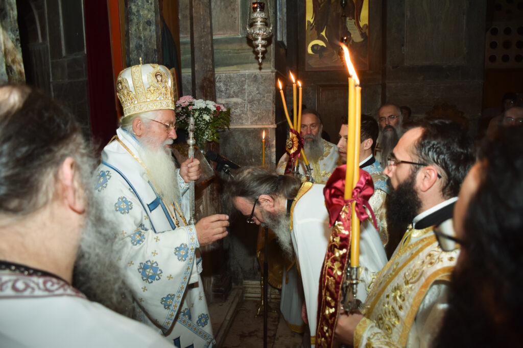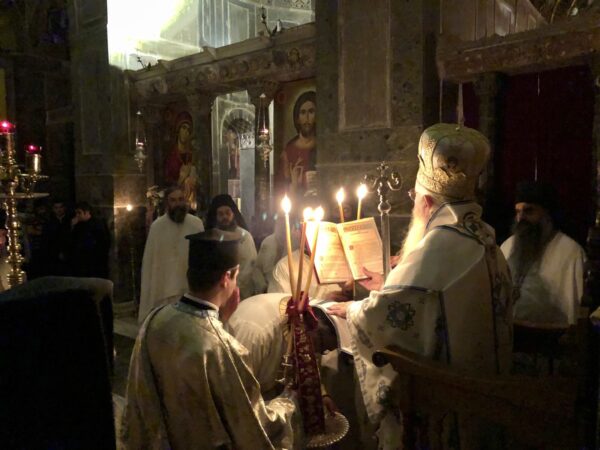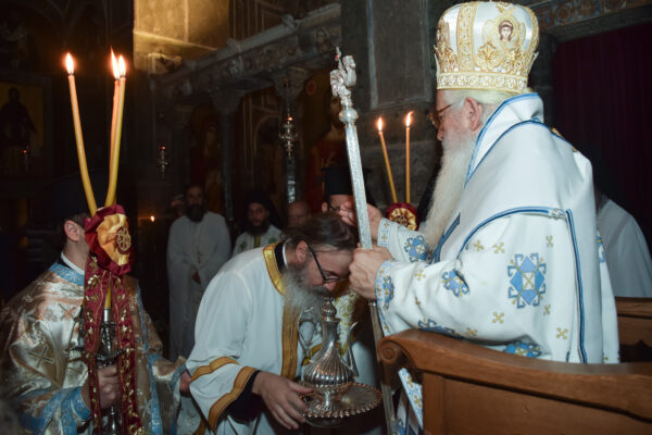 Κατά τη διάρκεια της Αγρυπνίας, ο Σεβασμιώτατος χειροτόνησε Διάκονο το μοναχό της Μονής π. Γρηγόριο (κατά κόσμον Παναγιώτη) Αντωνιάδη. Ο Σεβασμιώτατος απευθυνόμενος προς τον π. Γρηγόριο αναφέρθηκε στο μέγα μυστήριο της ιερωσύνης, το οποίο κατά τον ιερό Χρυσόστομο εδόθη μόνο στους ανθρώπους. Πατρικώς τον συμβούλεψε να διακονεί με πίστη, υποκοή και ταπείνωση το ιερό θυσιαστήριο, και του ευχήθηκε να είναι μια μικρή φλόγα σαν τη φλόγα του κεριού, που καθώς λιώνει, φωτίζει και δίνει ελπίδα στο σκοτάδι.