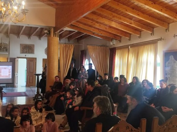 Ο Σεβασμιώτατος κ. Γεώργιος μίλησε στα παιδιά για το πνεύμα των ημερών και τους ευχήθηκε για το νέο χρόνο, καθώς και στους ιερείς και γονείς και όλοι μαζί έψαλαν τα κάλαντα και τραγούδησαν. Στη συνέχεια η κ. Μαρία Παπαλουκά διάβασε παραμύθια στα παιδιά για τα Χριστούγεννα και τον Άγιο Βασίλειο και παρουσίασε ένα χριστουγεννιάτικο κουίζ και έδωσε στα παιδιά ζωγραφιές για να ζωγραφίσουν. Στο τέλος μοιράστηκαν στα παιδιά δώρα και γλυκά.