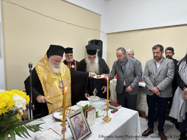 Ο Μητροπολίτης Ιεραπύτνης και Σητείας κ. Κύριλλος, ανταποκρινόμενος σε πρόσκληση του νεοεκλεγέντος Προέδρου της Τοπικής Κοινότητας Μαλλών κ. Εμμανουήλ Μεραμβελλιωτάκη, τέλεσε χθες την ακολουθία του Αγιασμού και ευλόγησε την Βασιλόπιτα της Τοπικής Κοινότητας, στην κατάμεστη από Μαλλιώτες αίθουσα εκδηλώσεων της Κοινότητας,