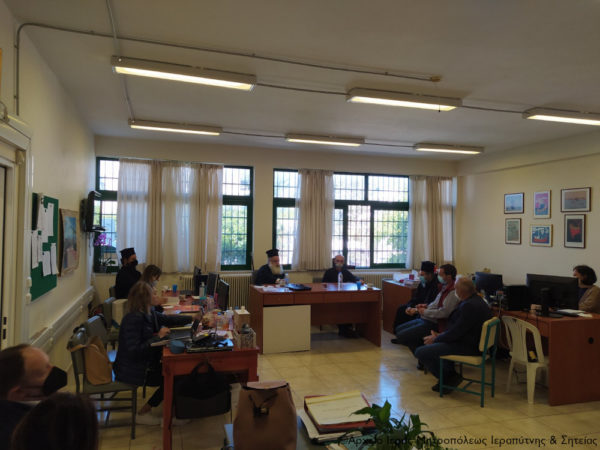 Ο Σεβασμιώτατος Μητροπολίτης Ιεραπύτνης και Σητείας κ. Κύριλλος, συνοδευόμενος από τον Αρχιμανδρίτη π. Φιλόθεο Δοργιάκη, Εφημέριο της Ενορίας Αγίας Φωτεινής Ιεράπετρας, μετέβη στο χώρο της αιμοδοσίας, έξω από το Σχολείο, και συνομίλησε εγκάρδια με τον Διευθυντή κ. Χρυσοβαλάντη Ψαρουδάκη, τον Θεολόγο καθηγητή του σχολείου κ. Δημήτριο Χοϊλού και τους άλλους καθηγητές.