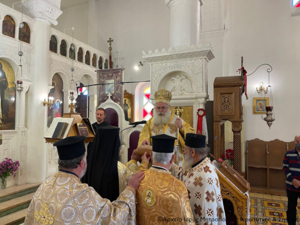 Ο Σεβασμιώτατος Μητροπολίτης Ιεραπύτνης και Σητείας κ. Κύριλλος χοροστάτησε το Σάββατο 19 Νοεμβρίου 2022 κατά την ακολουθία του Όρθρου, ευλόγησε τους προσφερόμενους άρτους και στη συνέχεια ιερούργησε στον Ιερό Ενοριακό Ναό Αγίας Τριάδος Παλαικάστρου.