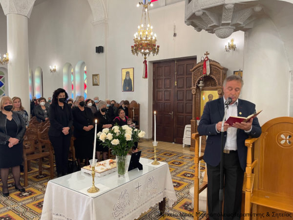 Πριν την Απόλυση τέλεσε το τεσσαρακονθήμερο μνημόσυνο της μακαριστής Μαρίας Ρελάκη, Προσκυνήτριας, μητέρας του Εφημερίου Παλαικάστρου πρωτ. Σπυρίδωνος Ρελάκη, και ευχήθηκε ο Κύριος της ζωής και του θανάτου να κατατάξει την μακαρία ψυχή της μετά των Δικαίων και Αγίων.