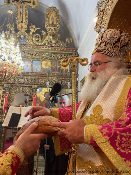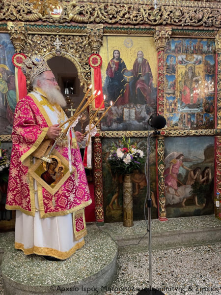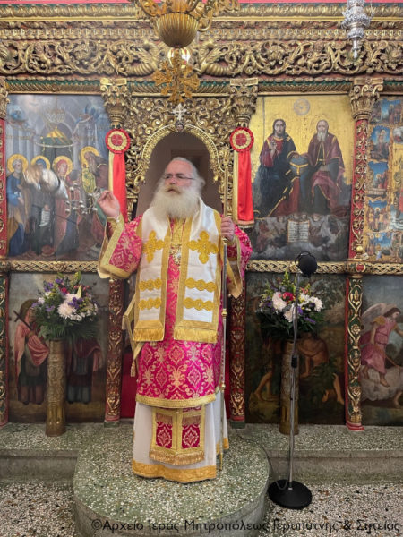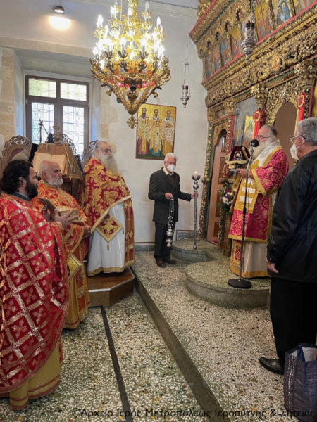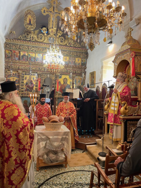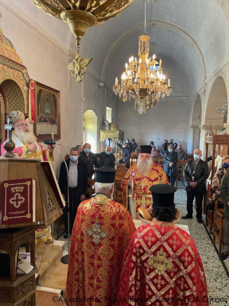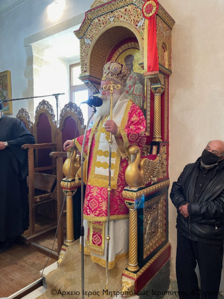 Ο Μητροπολίτης Ιεραπύτνης και Σητείας κ. Kύριλλος χοροστάτησε στην ακολουθία του Όρθρου και στη συνέχεια τέλεσε τη Θεία Λειτουργία και κήρυξε κατάλληλα τον θείο λόγο.