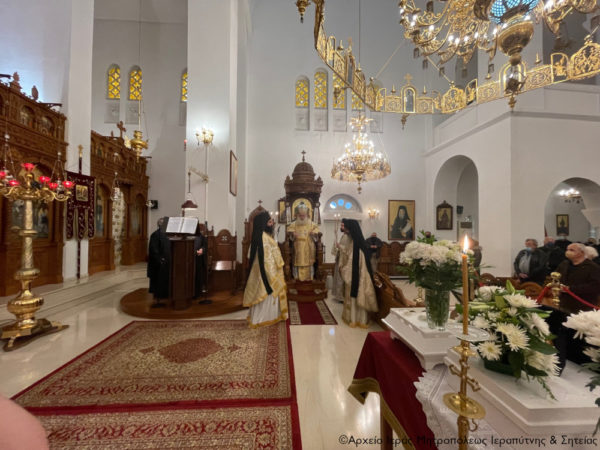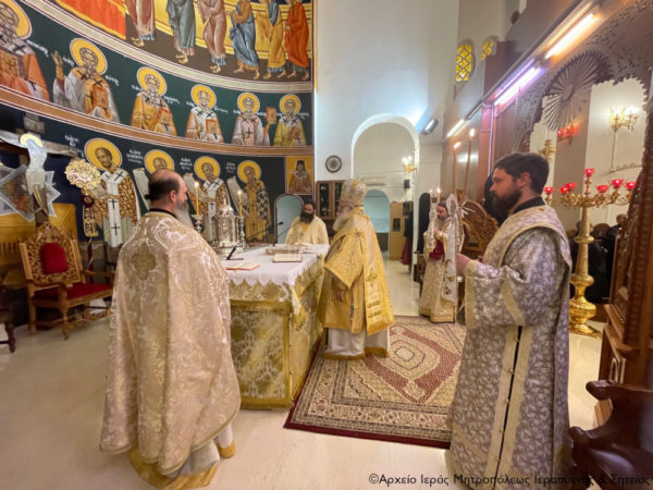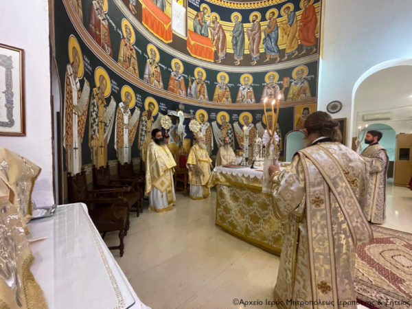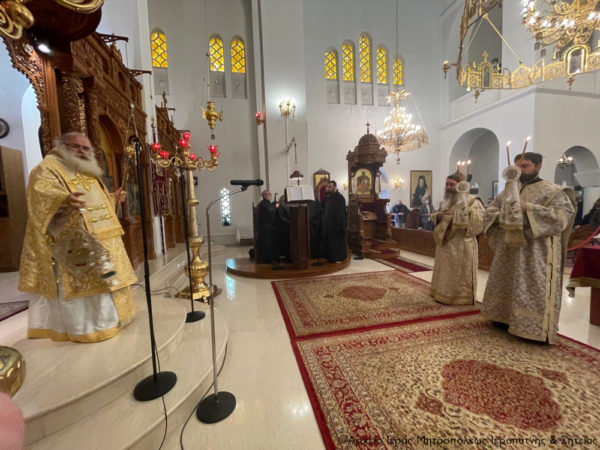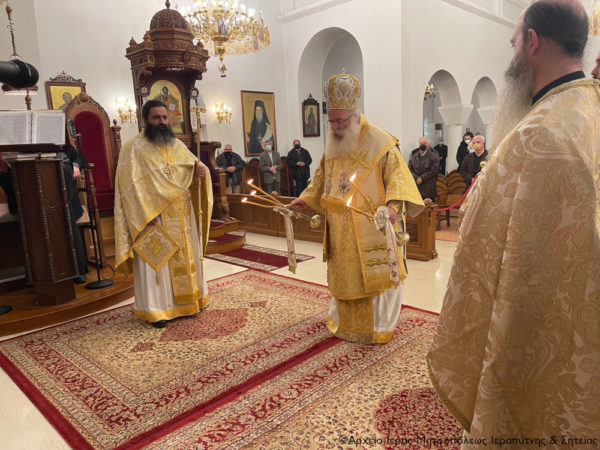 Ο Μητροπολίτης Ιεραπύτνης και Σητείας κ. Κύριλλος χοροστάτησε στην Ακολουθία του Όρθρου και στη συνέχεια τέλεσε την Αρχιερατική Θεία Λειτουργία στον Ιερό Καθεδρικό ναό Αγίας Φωτεινής Ιεράπετρας, την Κυριακή ΙΔ´ Λουκά 23 Ιανουαρίου 2022. Παράλληλα, πριν την Απόλυση ο Σεβασμιώτατος τέλεσε τα μνημόσυνα των μακαριστών Ιωάννου Σαρικλάκη, Βασιλείου Φελούκα και Πελαγίας Καψούλιου (τεσσαρακονθήμερα) και Μάρκου Γαλυμιτάκη (εννεαήμερο).