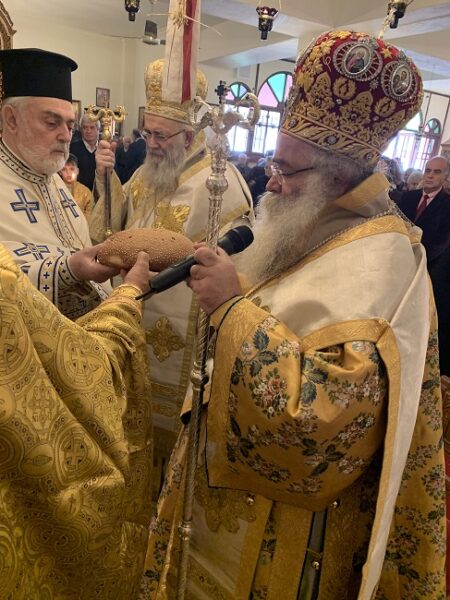Μετά την Απόλυση ο φιλοξενούμενος Ιεράρχης ευχαρίστησε εγκάρδια τον Σεβασμιώτατος κ. Κύριλλο για την φιλάδελφη αγάπη που επιδεικνύει προς το πρόσωπό του και του ευχήθηκε ο Θεός να του χαρίζει χρόνους πολλούς και να καθοδηγεί και να τρέφει το ποίμνιό του, να καταρτίζει τον Ιερό Κλήρο και τις Μοναστικές Αδελφότητες της Επαρχίας του με τον Άρτο της ζωής.