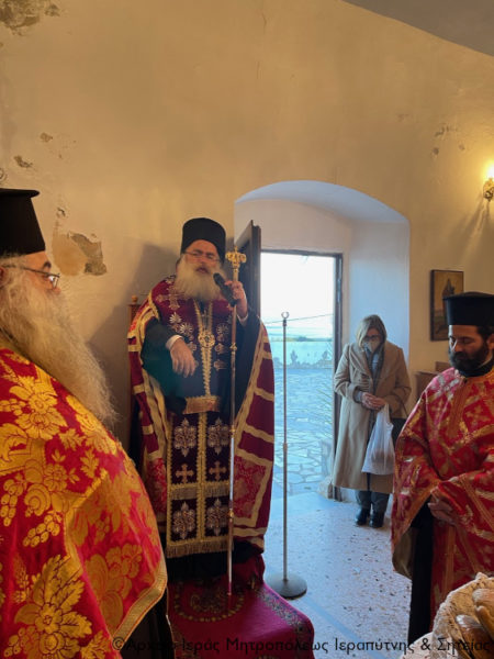Ο Μητροπολίτης Ιεραπύτνης και Σητείας κ. Κύριλλος χοροστάτησε στην Ακολουθία του του Μεγάλου πανηγυρικού Αρχιερατικού Εσπερινού της εορτής της μνήμης του Αγίου Ιερομάρτυρος Χαραλάμπους στον πανηγυρίζοντα φερώνυμο Ιερό Ναό της Ενορίας Νέας Ανατολής, στον οικισμό Αμμουδάρες Ιεράπετρας, το εσπέρας της Τετάρτης 9 Φεβρουαρίου 2022.