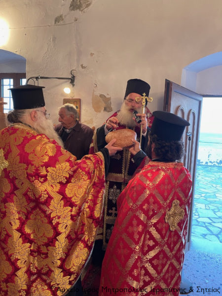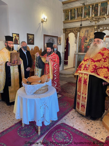 Μετά την ευλόγηση των προσφερόμενων άρτων ο Σεβασμιώτατος κ. Κύριλλος κήρυξε επίκαιρα τον θείο λόγο και αναφέρθηκε στο βίο και την πολιτεία του εορταζομένου Αγίου και στο νόημα της εορτής σήμερα.