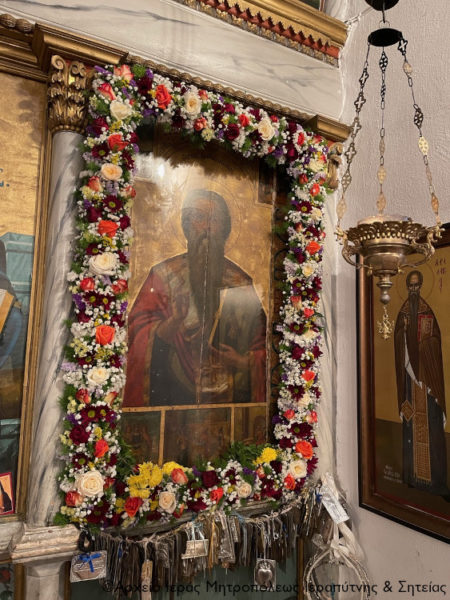 Έλαμπε από την χαρά και την χάρη του Χριστού. Αυτά έβλεπαν και αλλοιώθηκαν ακόμη και οι δήμιοι του και πίστεψαν στον ζώντα Χριστό. Και γιαυτό έλαμψε στον κόσμο με την ομολογία και το μαρτύριό του και κατέστη στύλος ακλόνητος της Εκκλησίας του Χριστού αλλά και λύχνος αείφωτος για όλη την οικουμένη. Τα είδωλα των εθνών και το σκότος της αγνωσίας διαλύθηκαν με το μαρτύριο του Αγίου. Και ο Χριστός τον χαρίτωσε και τον ανέδειξε λύχνο και λαμπάδα και φωτεινό φάρο για όλους εμάς τους πιστούς μέχρι σήμερα που τιμούμε με ευλάβεια την ετήσια μνήμη του”, είπε χαρακτηριστικά ο Σεβασμιώτατος.