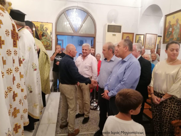 Εκκλησιάσθηκαν ο Αντιπρόεδρος της Βουλής των Ελλήνων και Βουλευτής Λασιθίου κ. Ιωάννης Πλακιωτάκης, η Βουλευτής Λασιθίου κ. Κατερίνα Σπυριδάκη, ο Δήμαρχος Ιεράπετρας κ. Εμμανουήλ Φραγκούλης, ο Πρόεδρος του Δημοτικού Συμβουλίου κ. Νικόλαος Τζουμάκας, οι Αντιδήμαρχοι κ. Γεώργιος Κουγιουμουτζάκης και κ. Φωτεινή Περακάκη, ο πρώην Δήμαρχος Ιεράπετρας κ. Νικόλαος Χριστοφακάκης, ο Διοικητής Τμήματος Ασφάλειας Ιεράπετρας κ. Νεκτάριος Φρονιμάης και πλήθος πιστών της πόλεως, οι οποίοι κατέκλυσαν τον πανηγυρίζοντα ιερό ναό για να συμμετάσχουν στην ακολουθία του Εσπερινού της εορτής και να προσκυνήσουν την εικόνα της Υψώσεως του Τιμίου Σταυρού.