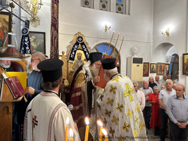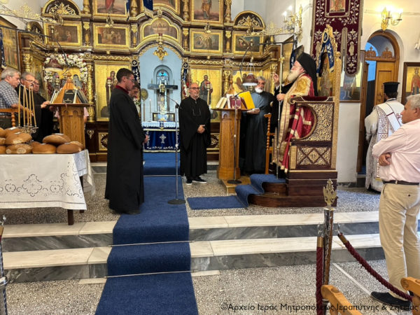 Τέλος, ο Σεβ. κ. Κύριλλος, αφού υπογράμμισε ότι ο Τίμιος και Ζωοποιός Σταυρός υψώνεται, για να μας ευλογεί και να μας ενδυναμώνει για να υπερβαίνουμε τις δυσκολίες μας στον καθημερινό αγώνα μας για αγιασμό, ευχήθηκε στο εκκλησίασμα χρόνια πολλά με τη χάρη, τη δύναμη και την προστασία του Τιμίου Σταυρού του Κυρίου μας, ο οποίος μας εμπνέει και μας διδάσκει την σταυρωμένη αγάπη, τη συγχώρηση, το δόσιμο και τη θυσία για τον πλησίον.