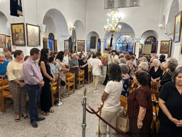 Στην ακολουθία του Αρχιερατικού Εσπερινού έλαβαν μέρος ο Πανοσιολ. Αρχιμ. Φιλόθεος Δοργιάκης, Εφημέριος του πανηγυρίζοντος ναού, ο Πανοσιολ. Αρχιμ. Πορφύριος Αγγελάκης, Εφημέριος του Ι. Κ. Ναού Αγίας Φωτεινής Ιεράπετρας, ο Αιδεσιμ. πρωτ. Μιχαήλ Ξυδιανός, συνταξιούχος Εφημέριος, ο Αιδεσιμ. πρωτ. Ανδρέας Πιτροπάκης, Εφημέριος της Ενορίας Μεταμορφώσεως Σωτήρος πόλεως Ιεράπετρας, ο Αιδεσιμ. πρωτ. Σάββας Λιναρδάκης, Εφημέριος της Ενορίας Παναγίας Ελεούσας Ιεράπετρας, ο Αιδεσιμολ. Πρωτ. Αθανάσιος Ταρλαντέζος, Εφημέριος του Ι. Μ. Ναού Αγίου Γεωργίου Ιεράπετρας, ο Αιδεσιμολ. πρωτ. Εμμανουήλ Μολυμπάκης, συνταξιούχος Εφημέριος, ο Αιδεσ. Οικονόμος π. Κων/νος Λιοντάκης, Εφημέριος της Ενορίας Παναγίας Ελεούσας, ο Αιδεσ. Ιερεύς Γεώργιος Λογκάκης και ο Ιερολ. Διάκονος Θεμιστοκλής Μπεϊνάς, ενώ τους θεσπέσιους ύμνους της εορτής απέδωσαν δύο χοροί με επικεφαλής αντίστοιχα τον Δ/ντή της Σχολής Βυζαντινής Μουσικής της Ι. Μητροπόλεως «Άγιος Ανδρέας Κρήτης» και πρωτοψάλτη του Ι. Μ. Ναού Αγίου Γεωργίου κ. Ιωάννη Αρώνη και τον πρωτοψάλτη του πανηγυρίζοντος ναού κ. Εμμανουήλ Γαλανάκη.