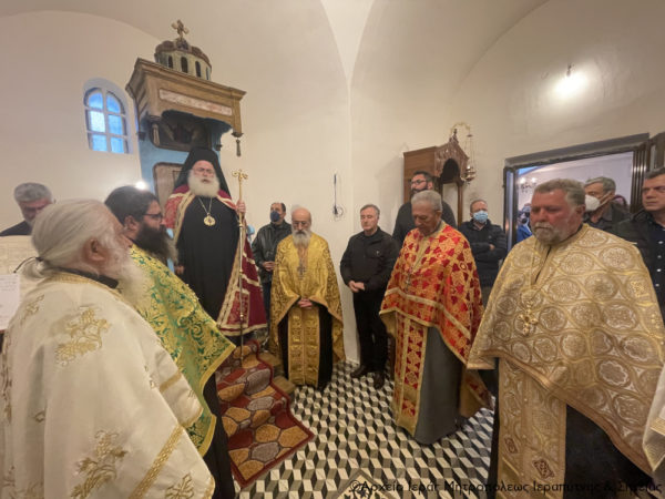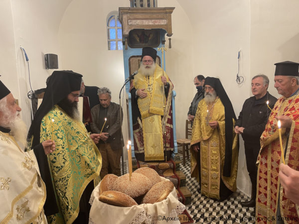O Σεβασμιώτατος Μητροπολίτης Ιεραπύτνης και Σητείας κ. Κύριλλος, περιστοιχούμενος από τον Ηγούμενο της Μονής Τοπλού και Εφημερίους της περιοχής, χοροστάτησε κατά την ακολουθία του Μεγάλου Εσπερινού, ευλόγησε τους προσφερόμενους άρτους και κήρυξε κατάλληλα τον θείο λόγο.