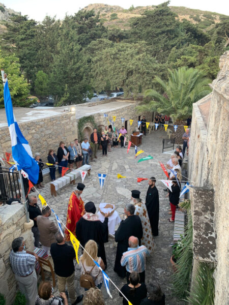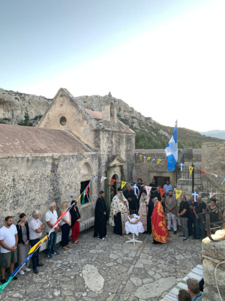 Στην ακολουθία έλαβαν μέρος ο Αιδεσ. Πρωτ. Σάββας Λιναρδάκης, Αρχιερατικός Επίτροπος Β΄ Περιφέρειας και ο Αιδεσ. Οικονόμος π. Γεώργιος Μανθαιάκης, Εφημέριος Ενορίας Μεσελέρων, ενώ έψαλε χορός με επικεφαλής τον Πρωτοψάλτη και Διευθυντή της Σχολής Βυζαντινής Μουσικής της Ιεράς Μητροπόλεως Ιεραπύτνης και Σητείας «Άγιος Ανδρέας ο Κρήτης» κ. Ιωάννη Αρώνη. Παρέστησαν οι διαμένοντες στη Μονή κατά την περίοδο του Δεκαπενταυγούστου και πιστοί από την ευρύτερη περιοχή της Ιεράπετρας, μεταξύ των οποίων ήταν ο Αντιδήμαρχος Ιεράπετρας κ. Πέτρος Μαστοράκης, η Πρόεδρος της «ΚΟΙΝΩ.ΠΟΛΙΤΙ.Α» Δήμου Ιεράπετρας κ. Μαρία Σακαδάκη-Μπαχλιτζανάκη, ο Δημ. Σύμβουλος κ. Κων/νος Αστροπεκάκης και ο Προϊστάμενος του Τμήματος Επιστημών Διατροφής και Διαιτολογίας Σητείας και νεοεκλεγείς Κοσμήτορας της Σχολής Επιστημών Υγείας του Ελληνικού Μεσογειακού Πανεπιστημίου κ. Βασίλης Ζαφειρόπουλος.